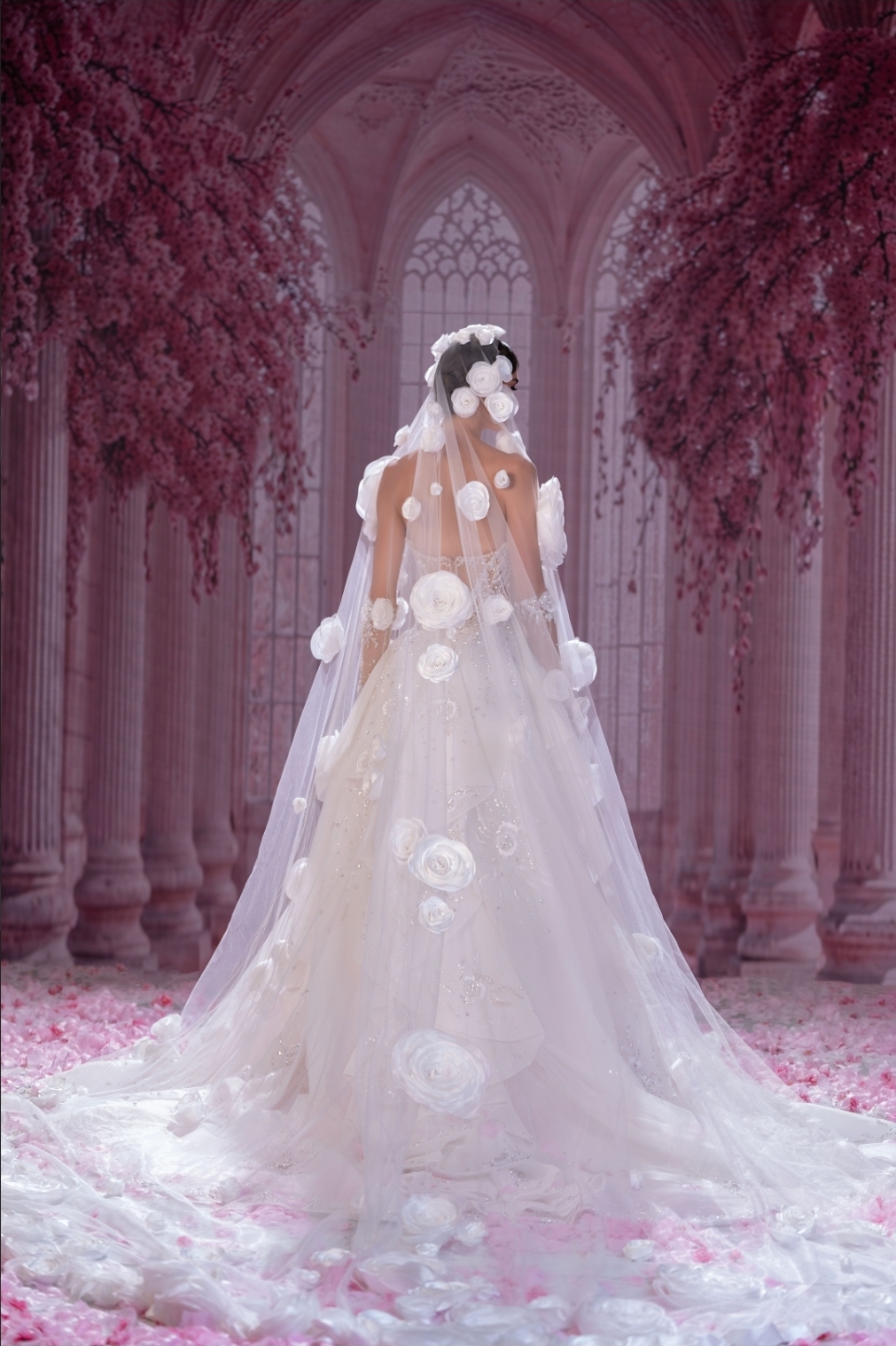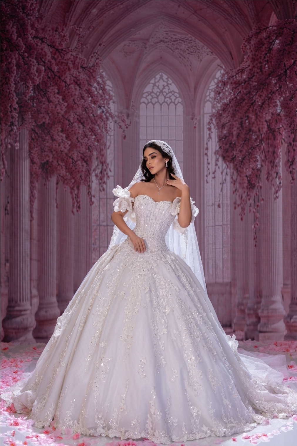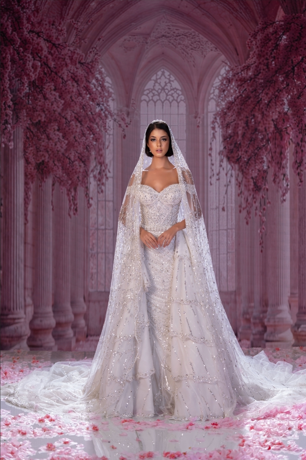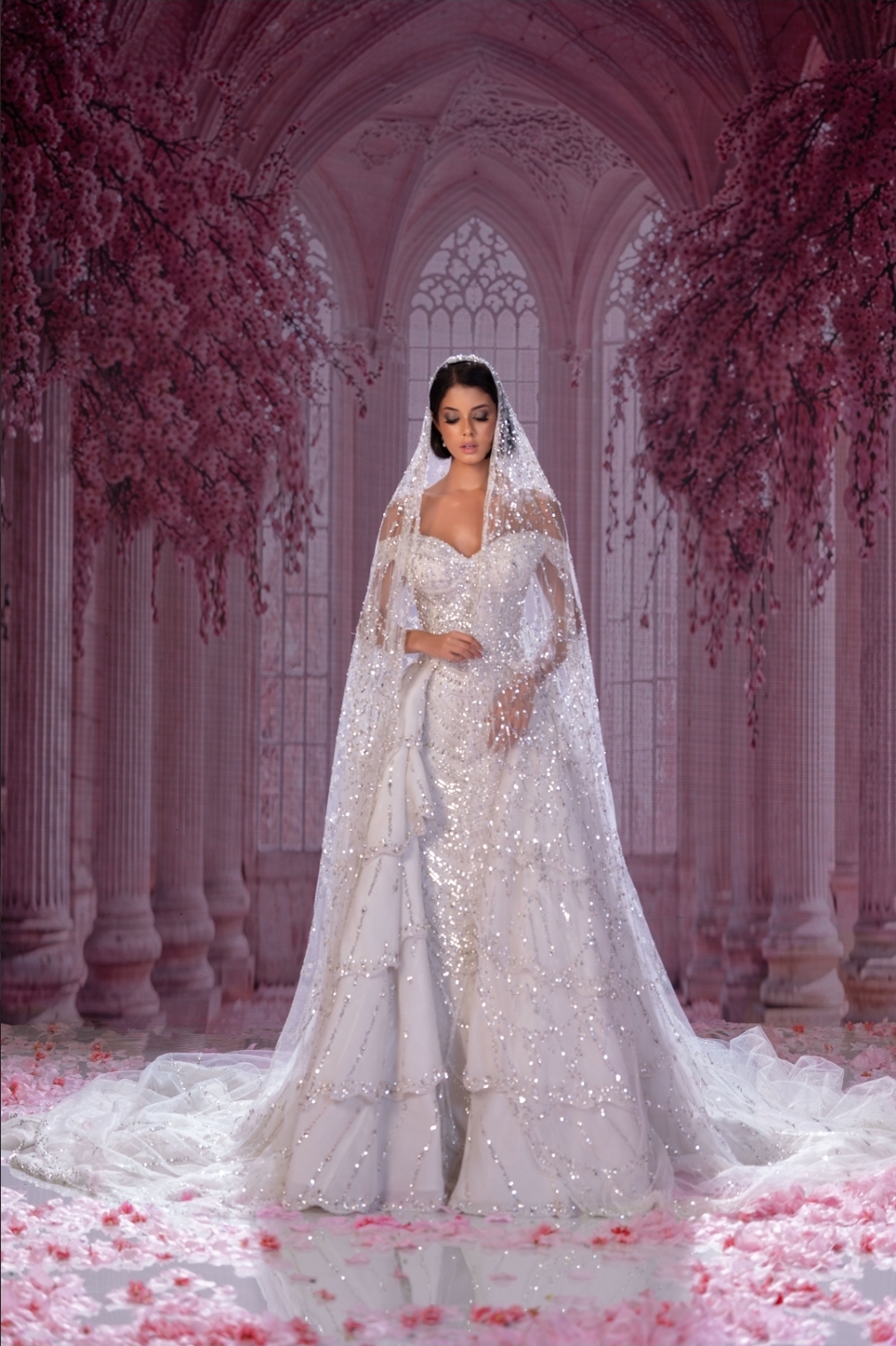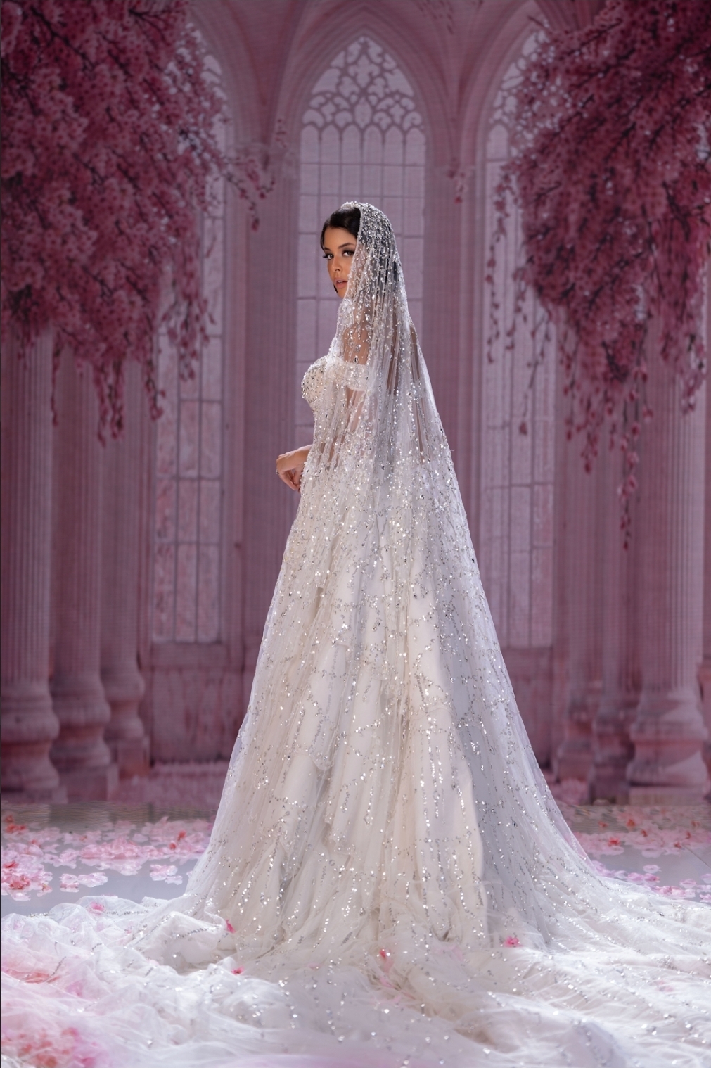 المجموعة التي ضمّت 27 تصميماً فاخراً تنوّعت بين فساتين السهرة والأعراس، جسّدت فلسفة أن الجمال الحقيقي لا يخضع لمواسم، بل يخلق موسمه الخاص. وفي خروجٍ أنيق عن التقاليد اللونية لموسم الشتاء، مزجت التصاميم بين الليلكي والنيلي والزهري الفاتح مع تدرجاته، بأقمشة نابضة بالضوء، وزخارف يدوية تحمل لمسات الهوت كوتور الفاخرة، وكأن كل فستان هو قصيدة تُكتَب بالخيط والإبرة.